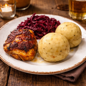 Als „Klassiker´´ mit Rotkohl und Klößen oder alternativ mit Ofengemüse