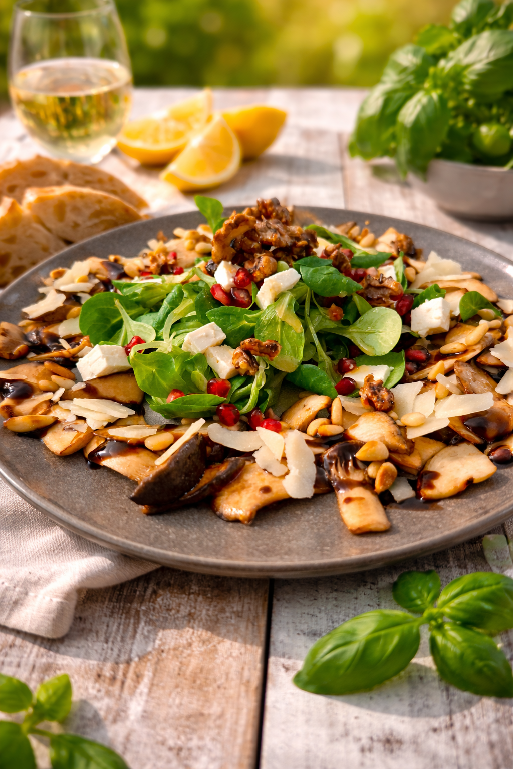 Ideal als Vorspeise oder mit Baguette und Salat auch ein schönes, leichtes Hauptgericht.Wir hatten einen Feldsalat mit Feta, Granatapfel und karamellisierten Walnüssen dazu.